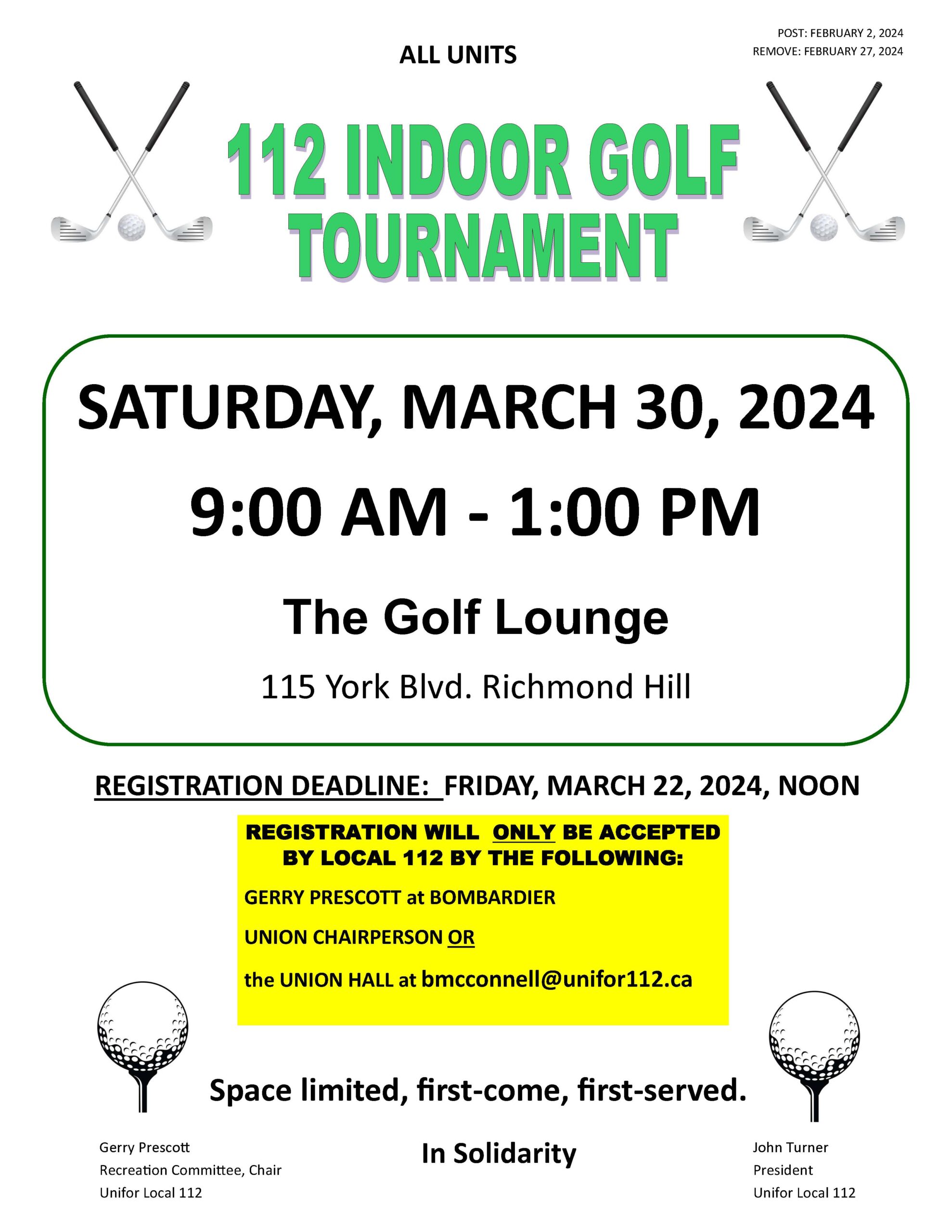 112 INDOOR GOLF TOURNAMENT UNIFOR NATIONAL INDOOR BASKETBALL Solidarity with Striking GreenShield Members!