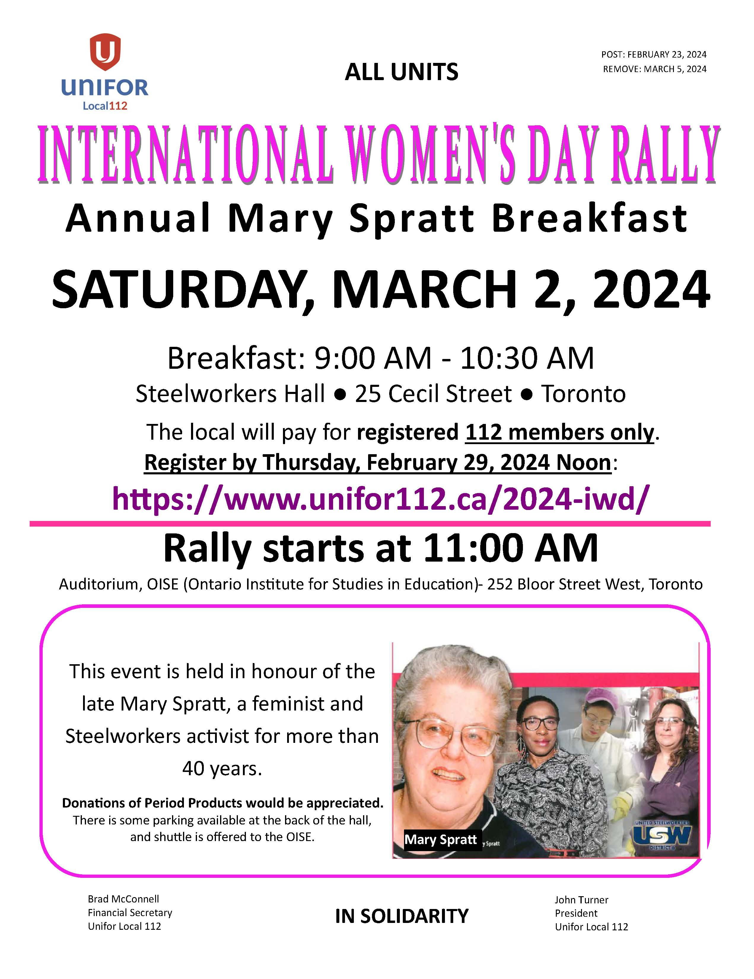 2024 IWD-RALLY, MARCH AND BREAKFAST Please enable JavaScript in your browser to complete this form.Please enable JavaScript in your browser to complete this form.Member's Name *FirstLastPhone Workplace Layout Member's Email *Unit / Workplace *Select oneANGUS FACILITIESANNDORE HOUSEBOMBARDIERBRINKS BARRIEBRINKS TORONTOCOURTYARD BY MARRIOTTCUSCODE HAVILLANDDELTA TORONTO AIRPORTEURAMAX CANADA INC.HILTON GARDEN INNHYATT REGENCYJOBSITE INDUSTRIALMDA SPACEMPGCPAN PACIFIC TORONTOSIMCOE TERRACETHE W HOTELTOROMONT BRADFORDTOROMONT CONCORDTOROMONT MATERIAL HANDLINGTOROMONT ORENDATRIMACUTILVPC GROUPWIRECOMM SYSTEMS INCWOODBRIDGE FOAMHow many attending, including the member?Submit 2024 BLACK HISTORY MONTH CELEBRATION UNIFOR MENTAL HEALTH AWARENESS- 2024 T-Shirt