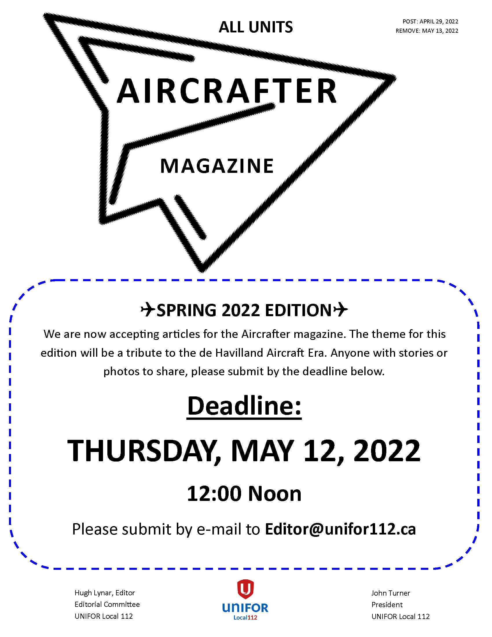 AIRCRAFTER MAGAZINE 2022 UNIFOR FAMILY EDUCATION PROGRAM 2022 Scholarship Application period is OPEN!