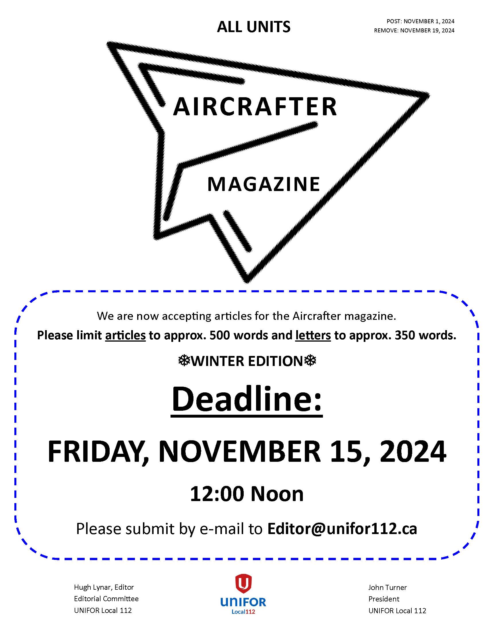 Email: Editor@unifor112.ca