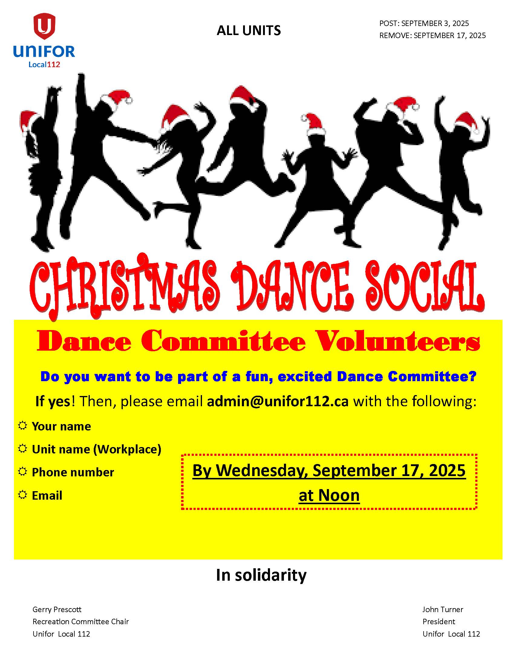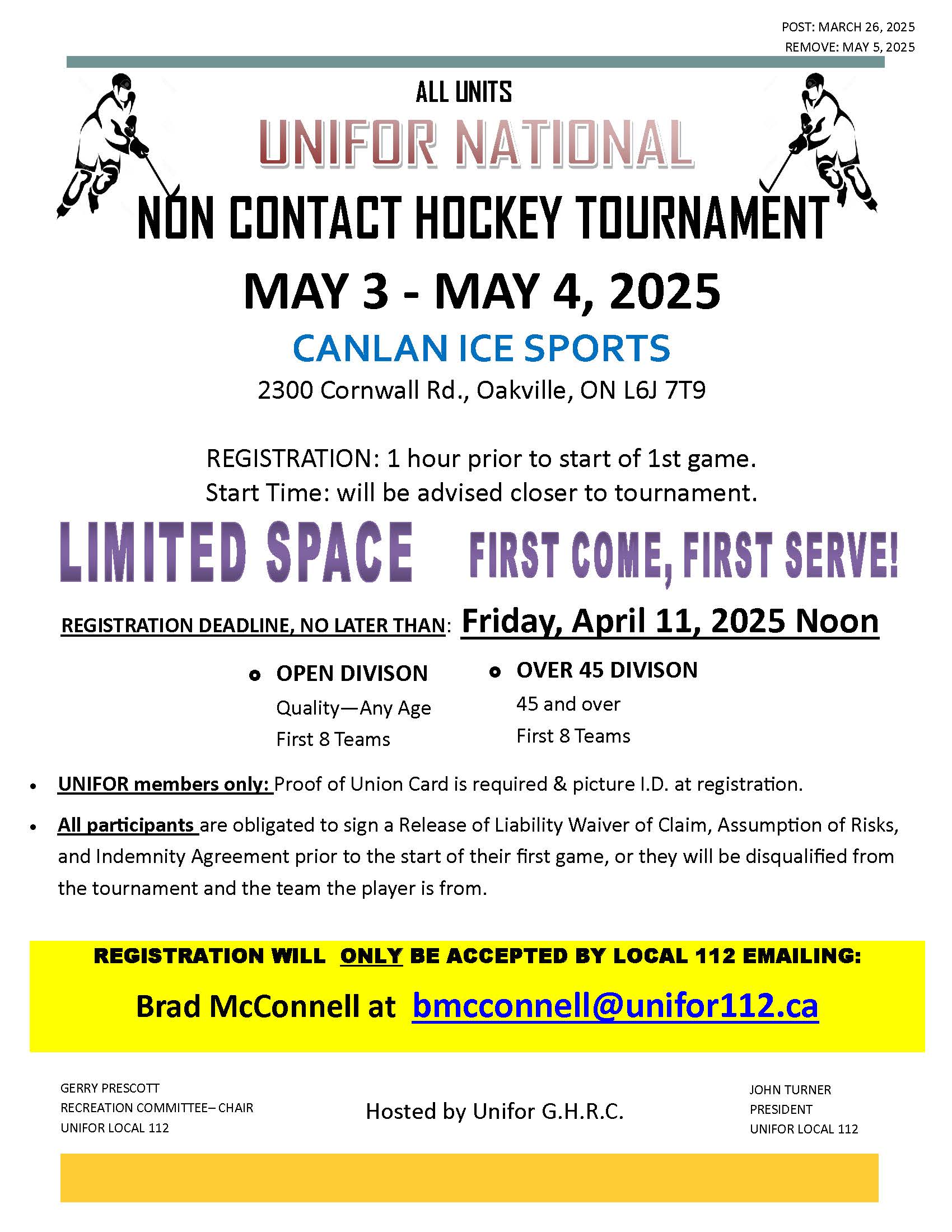 • Union Hall – Brad McConnell, bmcconnell@unifor112.ca