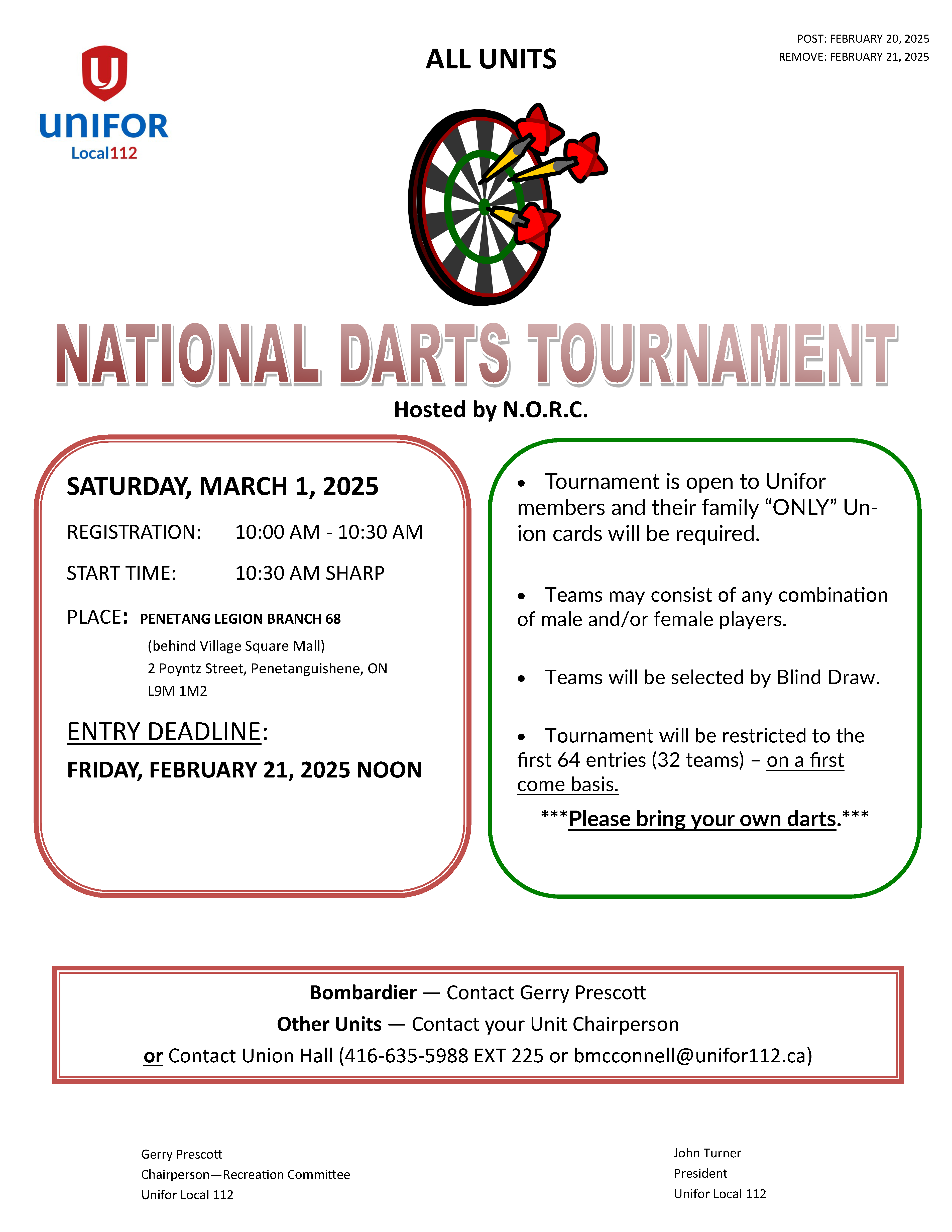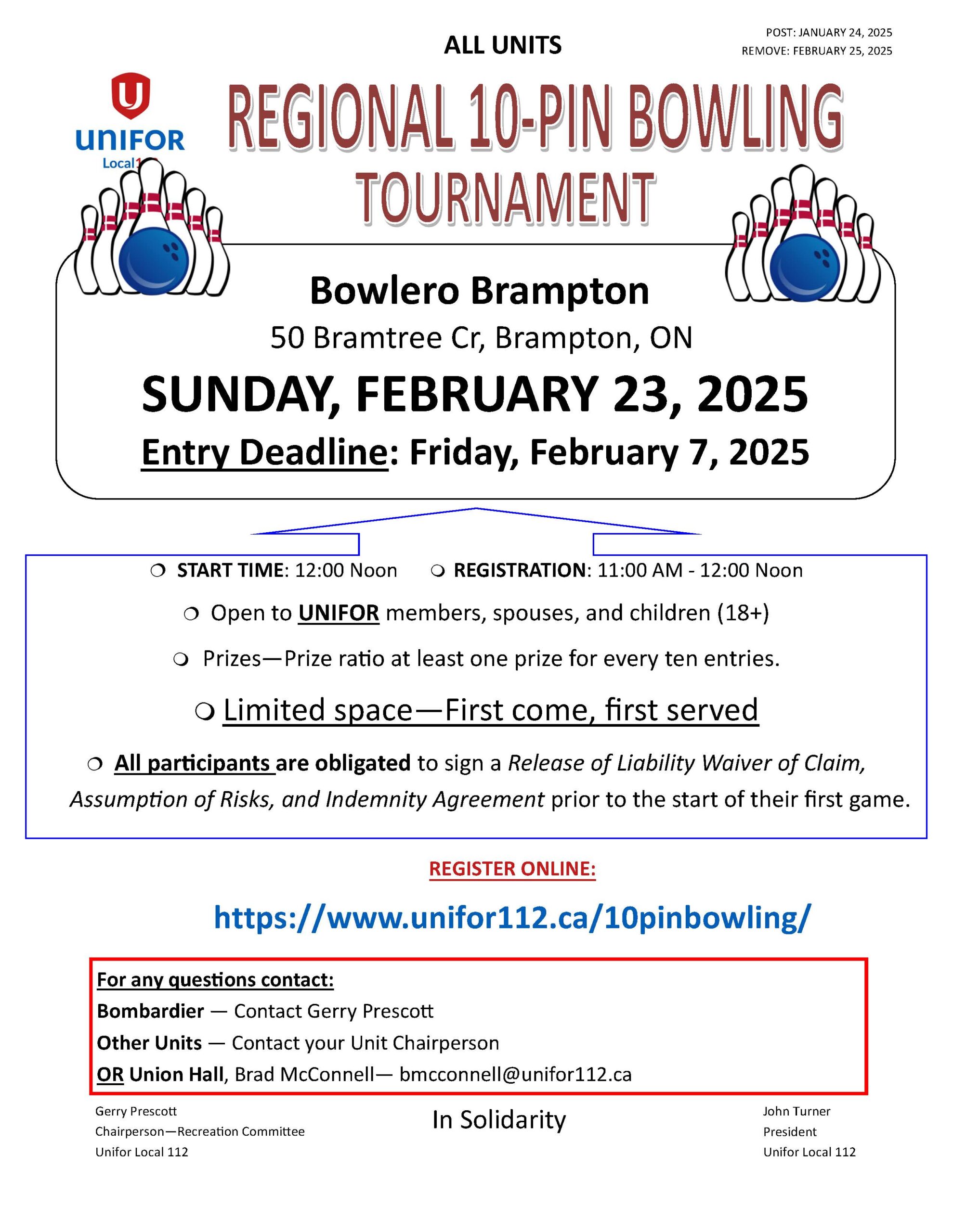 Other Units: Contact your Unit Chairperson or Brad McConnell bmcconnell@unifor112.ca or 416-635-5988 Ext. 225