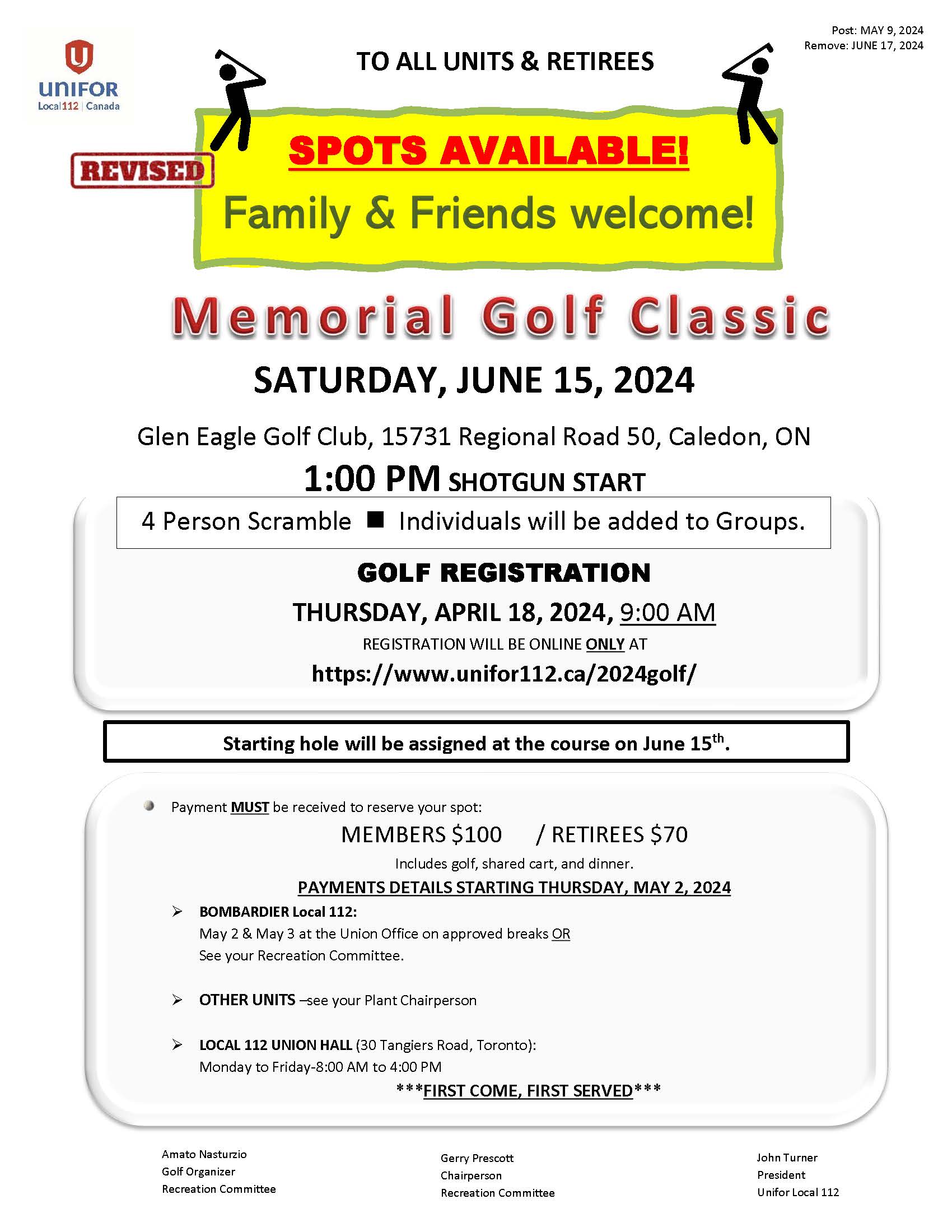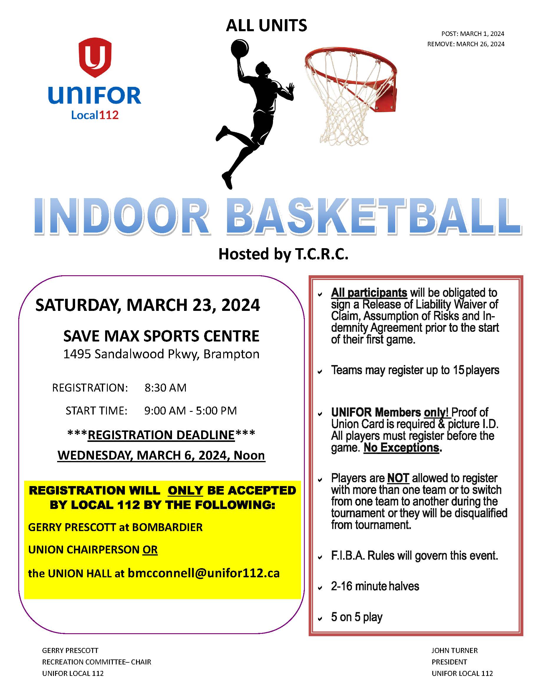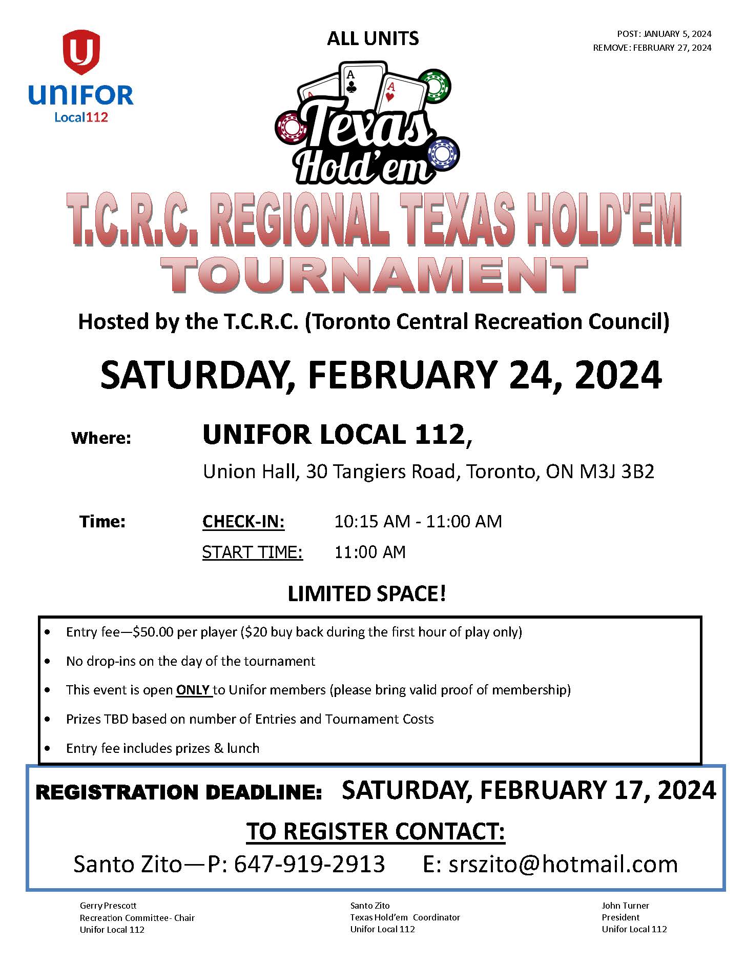 Event proudly sponsored by Unifor National, Ontario Regional Council, and the Unifor Recreation Department, offering members special reduced pricing.