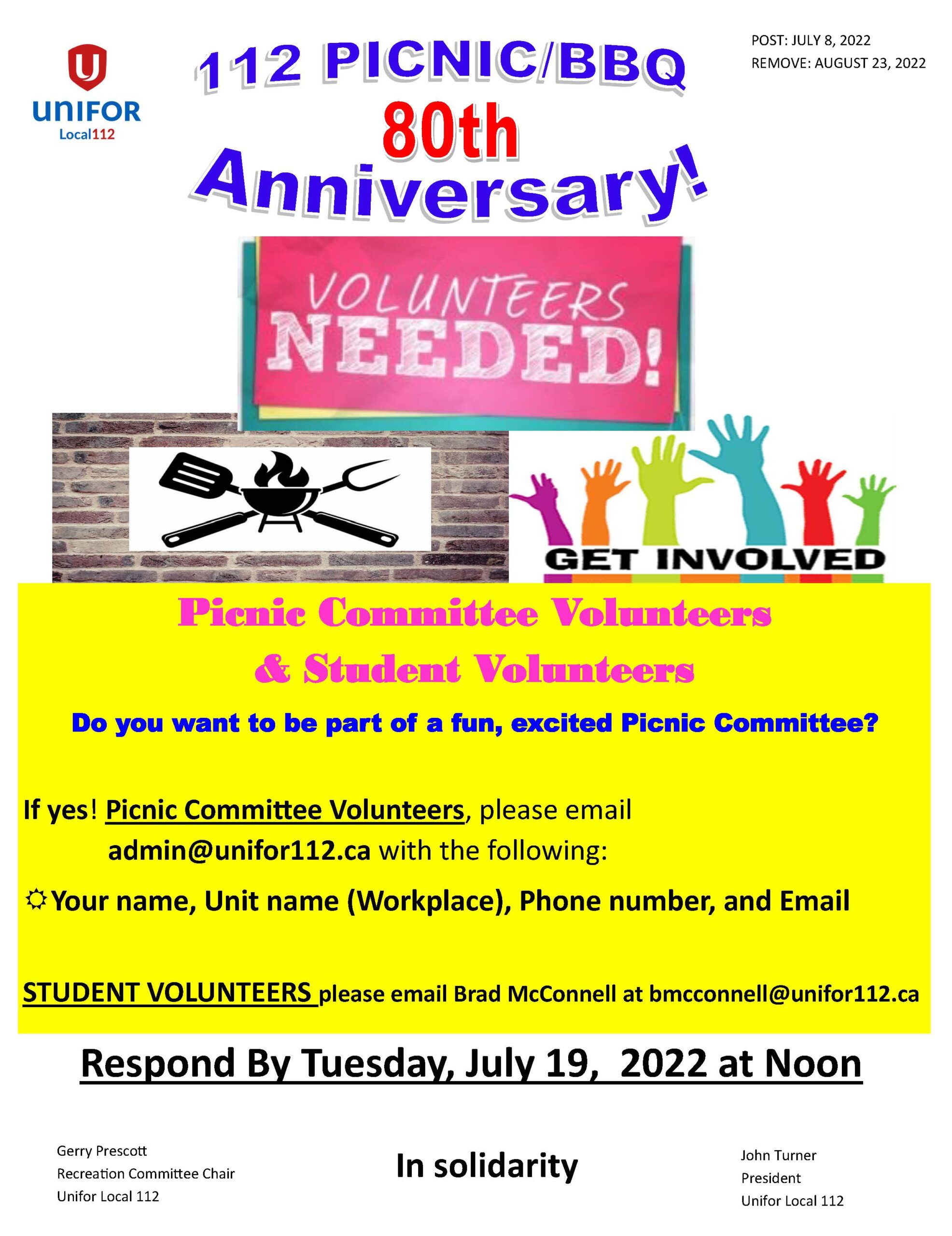If you have any questions please don’t hesitate to reach out to us at recreation@unifor.org