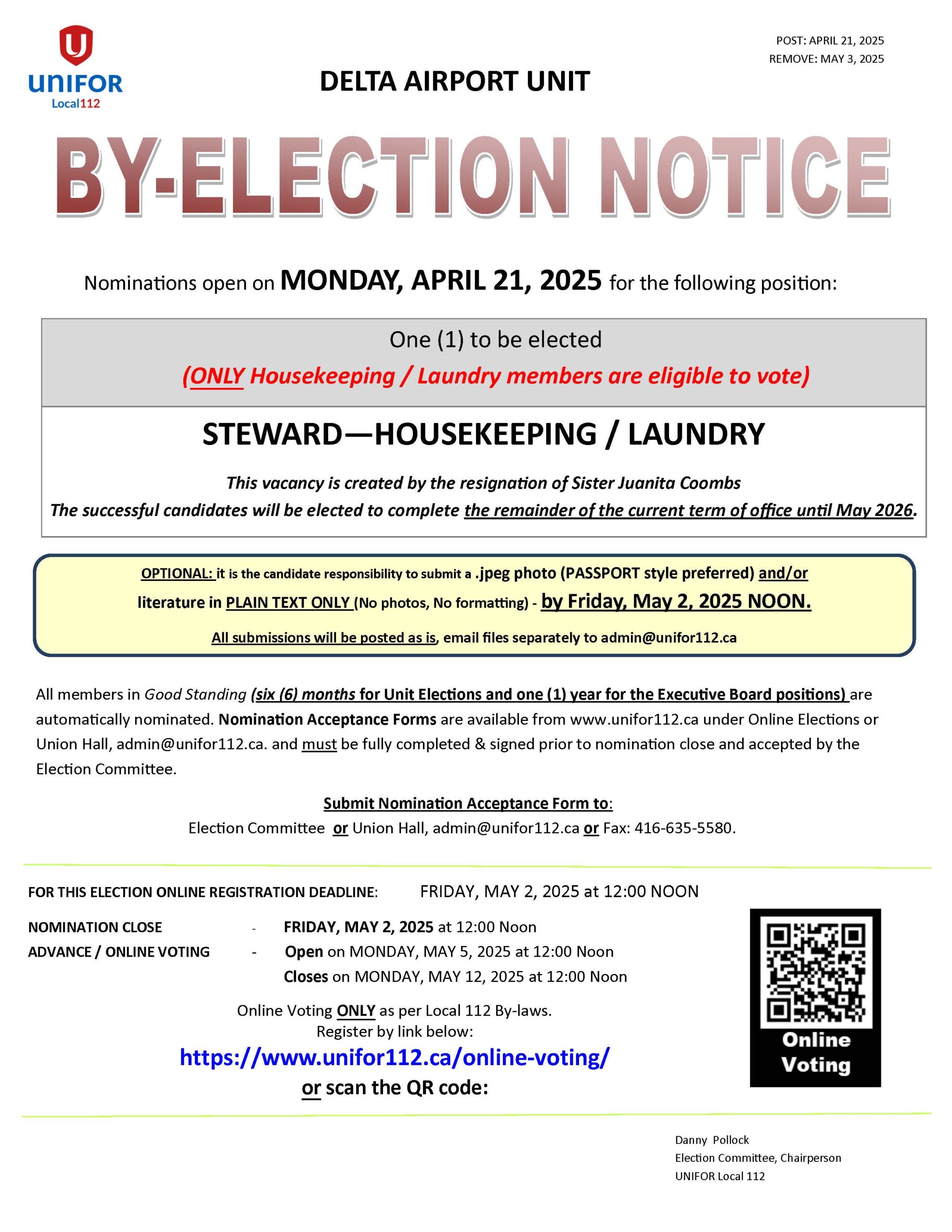 DA- BY-ELECTION NOTICE TOR-B BARGAINING UPDATE & STRIKE VOTE 2025 BOMBARDIER SKILLED TRADES SCHOLARSHIP