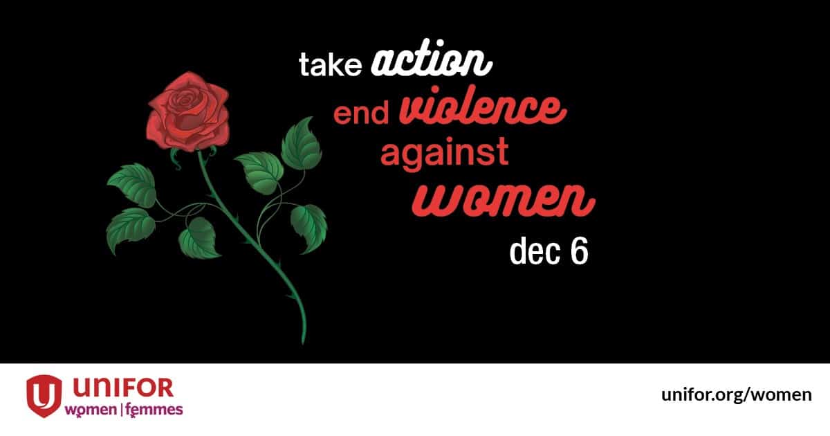 Unifor marks December 6, the National Day of Remembrance and Action on Violence Against Women. On this day, we solemnly remember the 1989 École Polytechnique massacre when 14 women were killed on their Montreal campus, and all lives tragically lost to gender-based violence, and we recommit to the ongoing battle against this pervasive and deeply unjust violence.