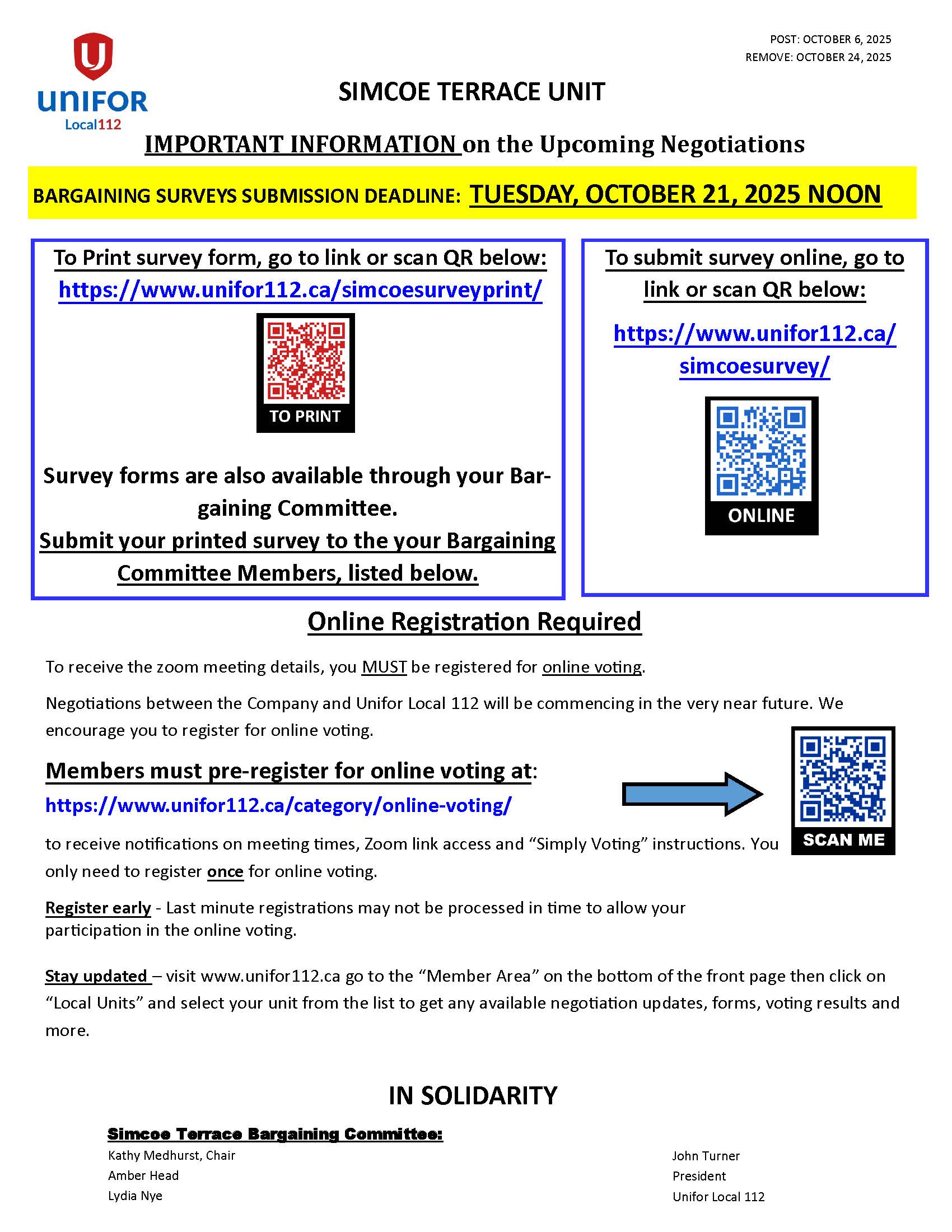 Simcoe Terrace -IMPORTANT INFORMATION on the Upcoming Negotiations